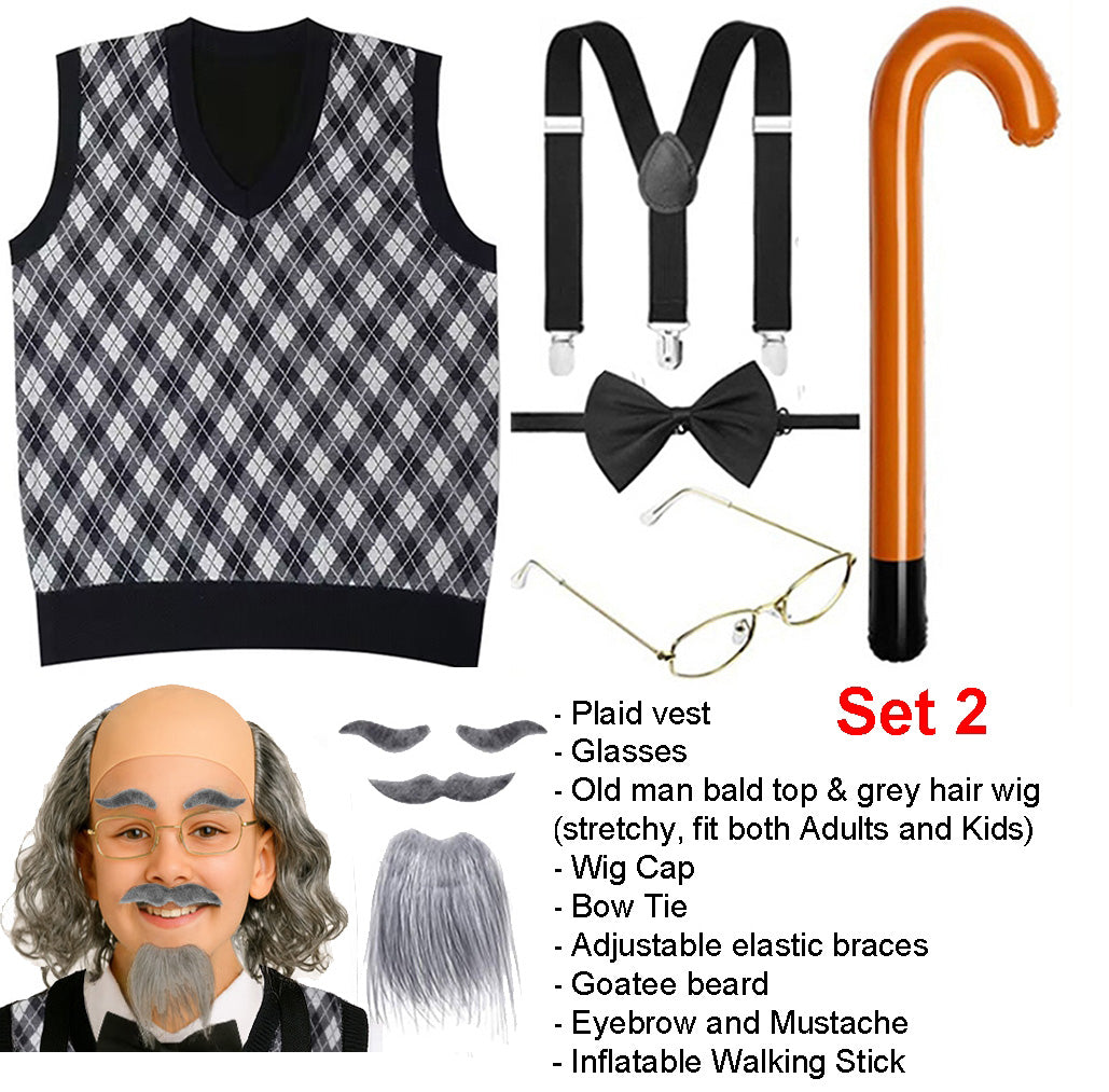 Boys Grandpa little Old man Child Cosplay Costume Party Kids Outfit 100 days of school