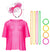 Pink Neon Fishnet Vest Top T-Shirt 1980s Costume Plus Beaded Necklace Bracelet