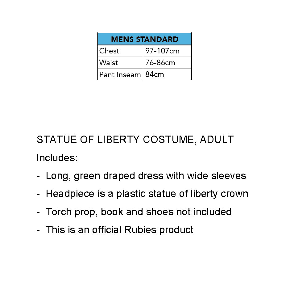 Statue of Liberty Adult Costume – Robe & Crown