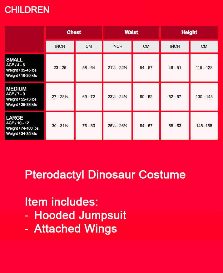 Bring prehistoric excitement to Book Week or school events with this Kids Pterodactyl Dinosaur Costume. The hooded jumpsuit features a detailed reptile design and attached wings, allowing children to become a soaring dinosaur character. Suitable for Book Week, themed parties and dress-up days across Australia.