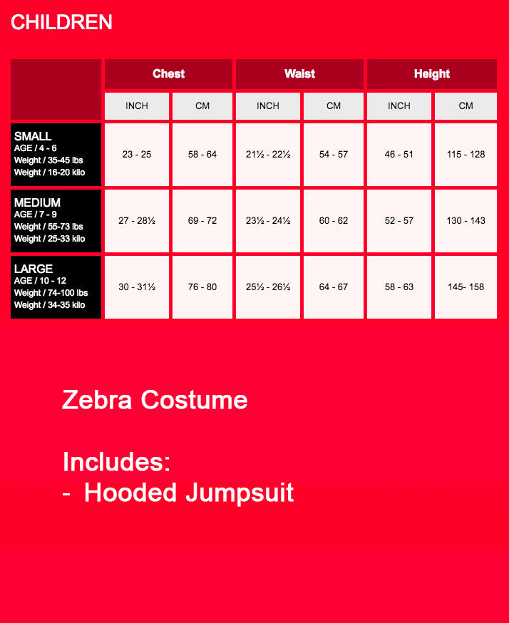 Make Book Week extra fun with this Kids Zebra Costume. The comfortable hooded jumpsuit features classic zebra stripes and an attached tail, creating an adorable animal character look for school events, themed parties and dress-up days across Australia.