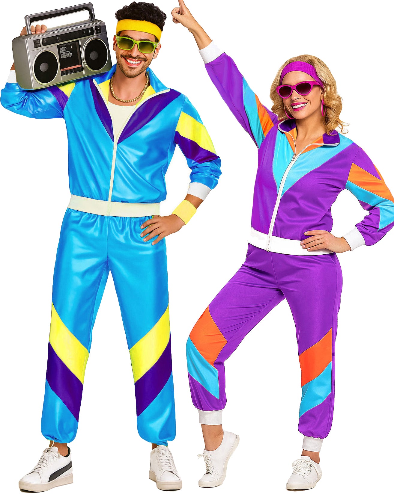 Couple 80s Shell Suit Dress Up Blue Purple Tracksuit Costume