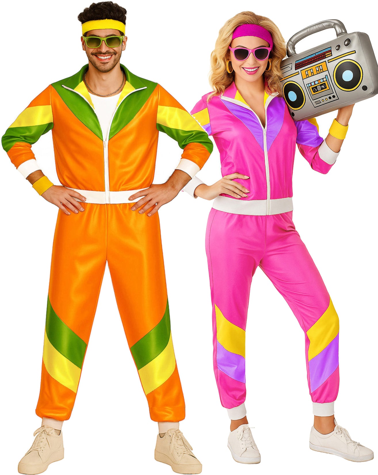 Couple 80s Shell Suit Dress Up Orange Pink Tracksuit