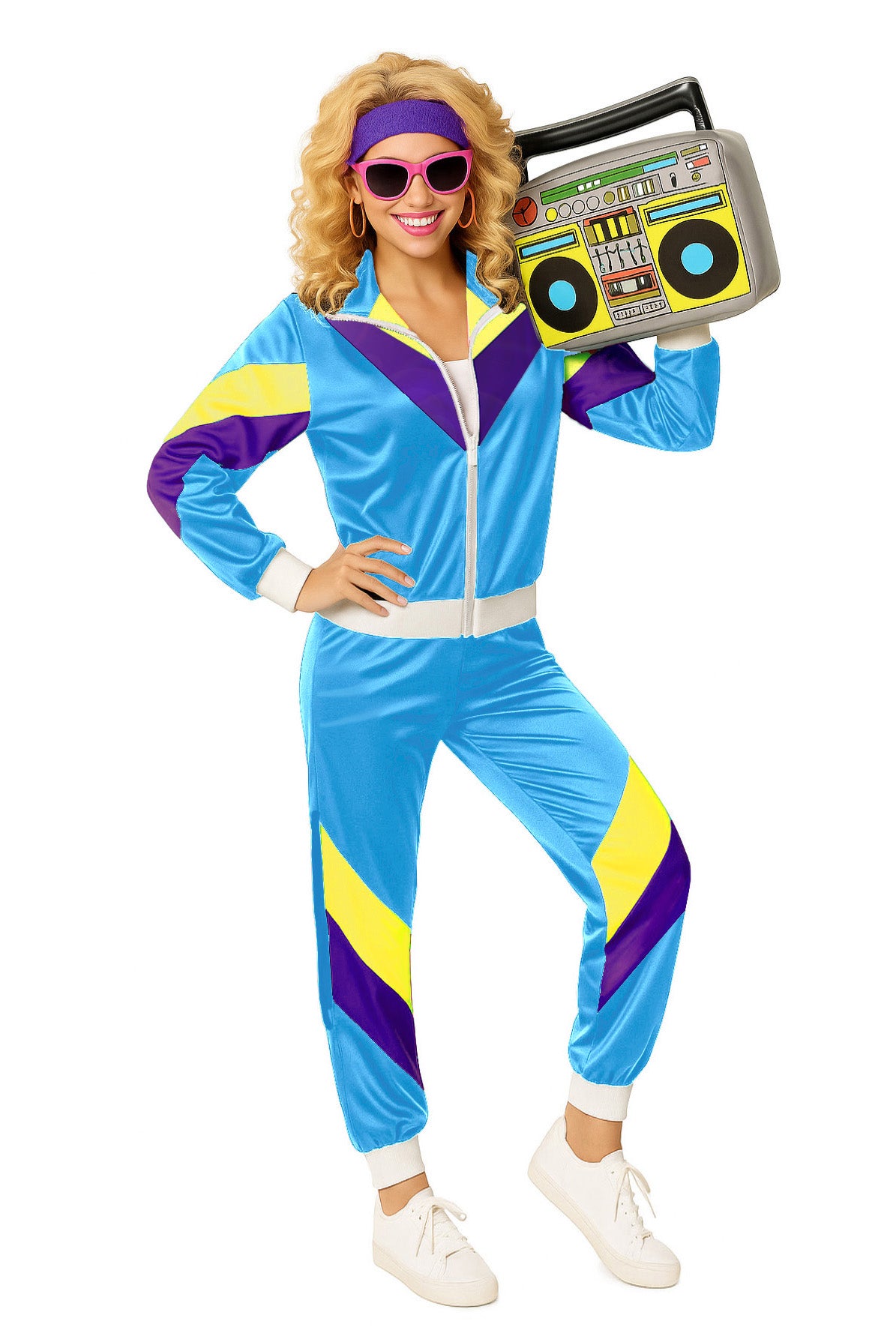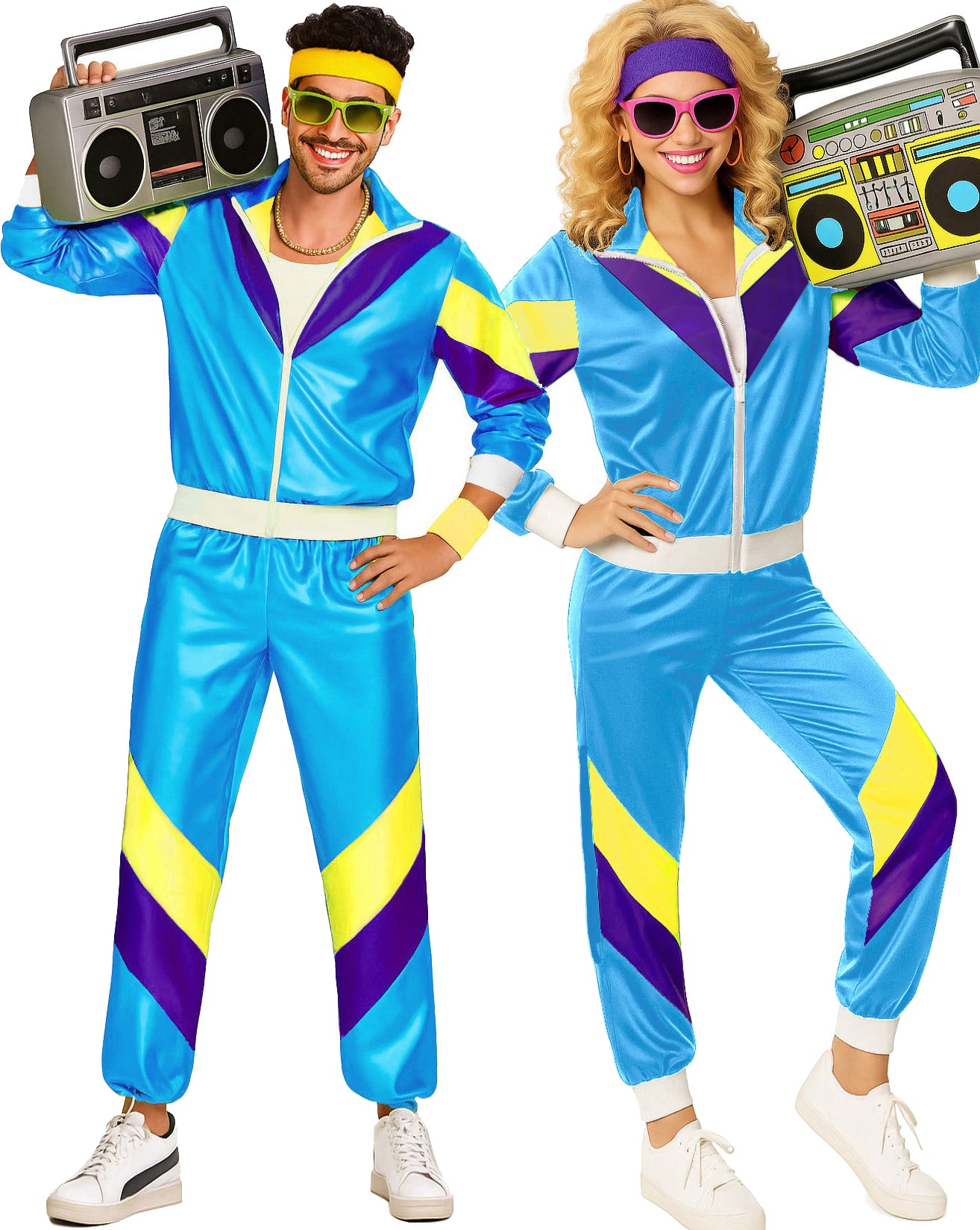 Couples 1980s Shell Suit Dress Up Blue Tracksuit Costume