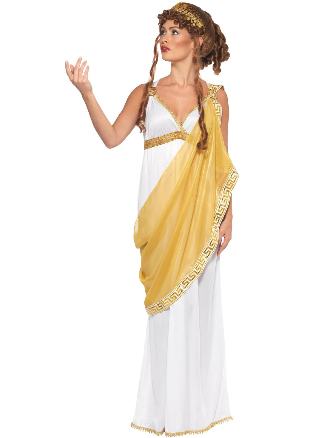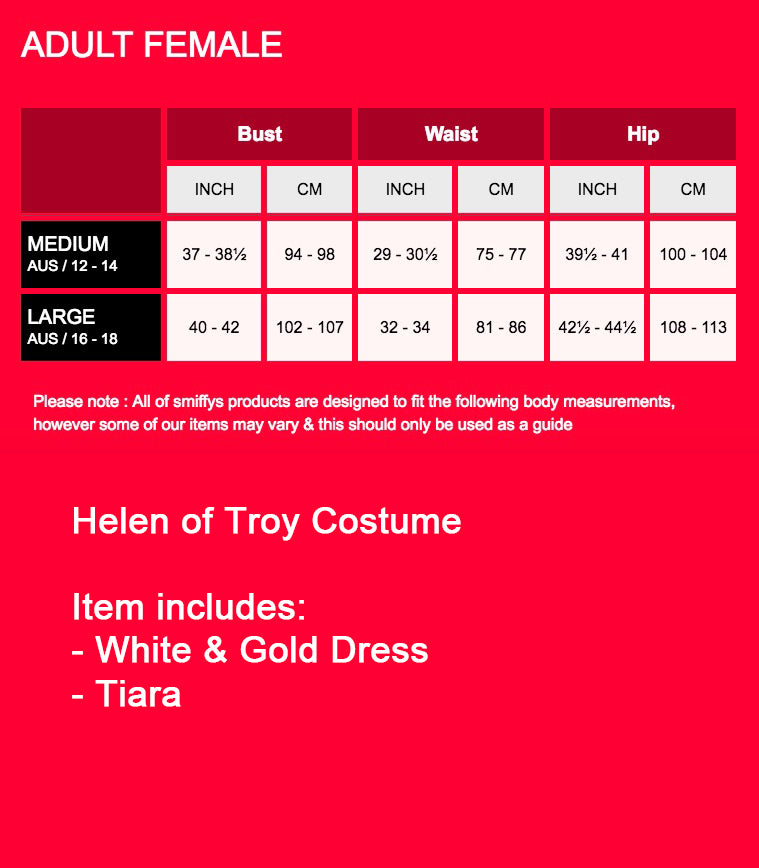 Bring the beauty of ancient mythology to life with this Helen of Troy Women’s Costume. The white and gold dress paired with a matching tiara creates a graceful and iconic look inspired by classic Greek legends. Suitable for Book Week events, school activities, themed parties and mythology storytelling, this elegant outfit provides comfort and style for adult wearers.