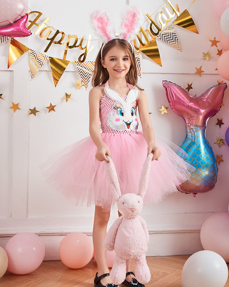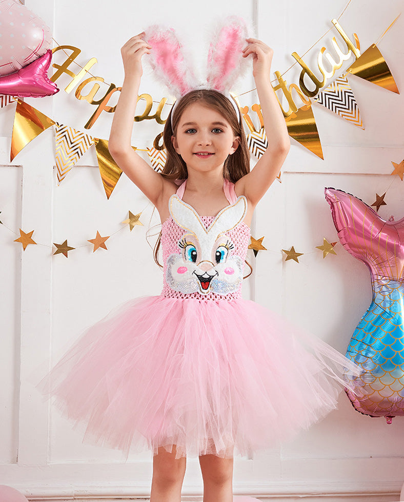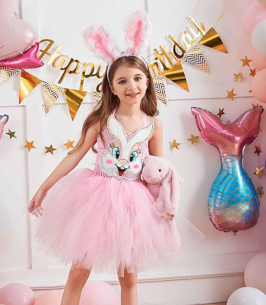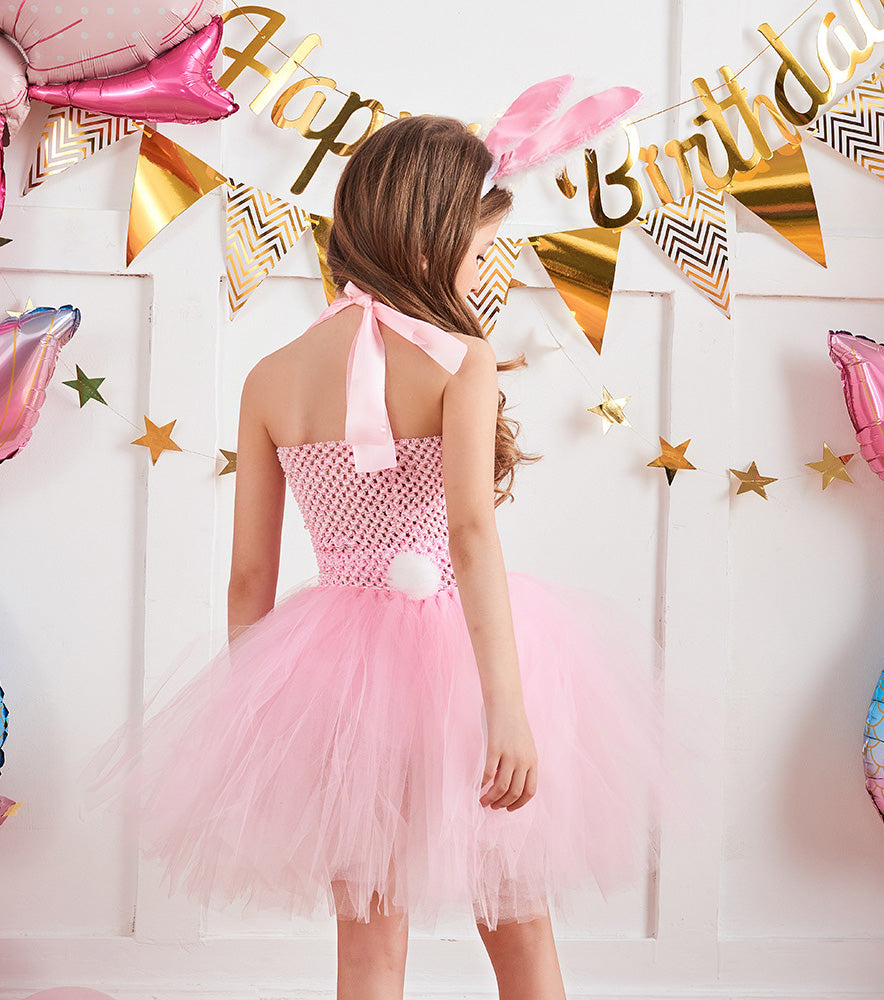 Girls Easter Bunny Costume Pink Tutu Dress
