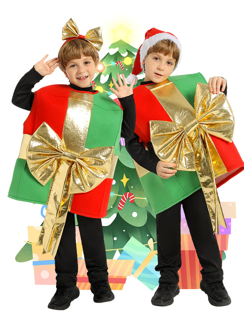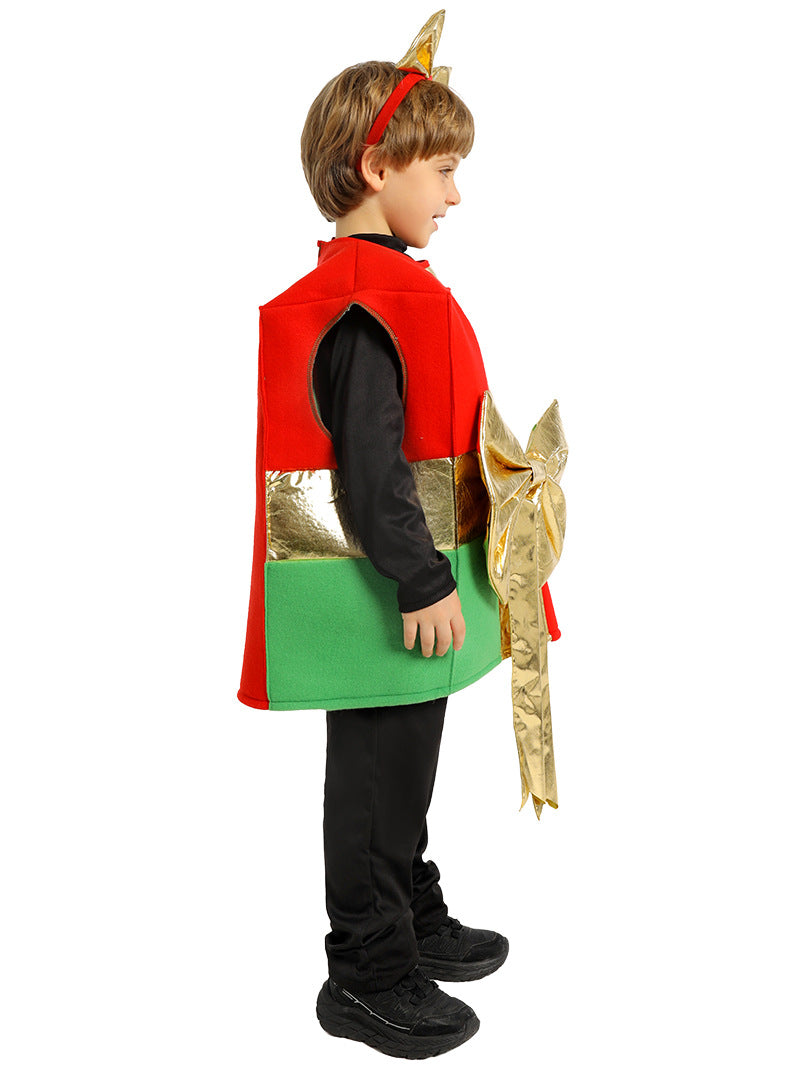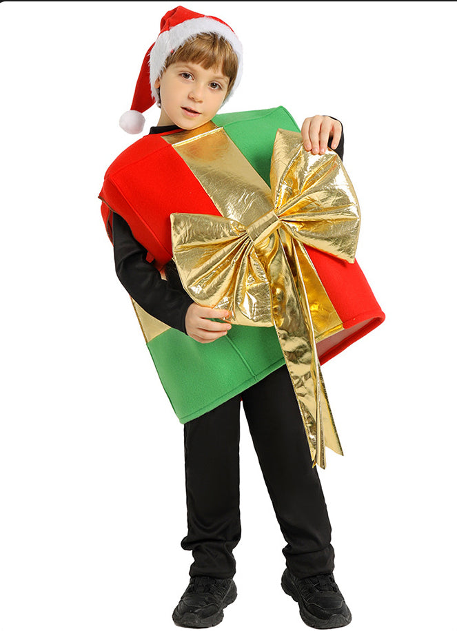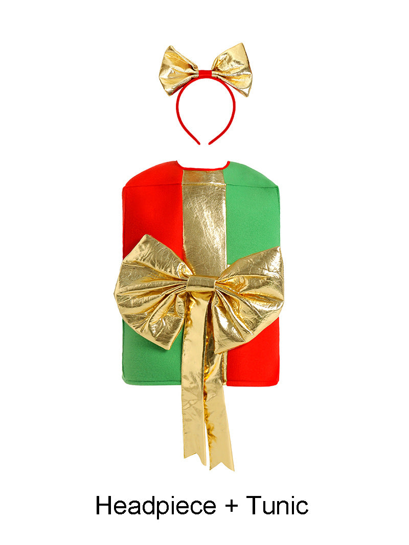Kids Christmas Gift Box Costume with Bow Headpiece