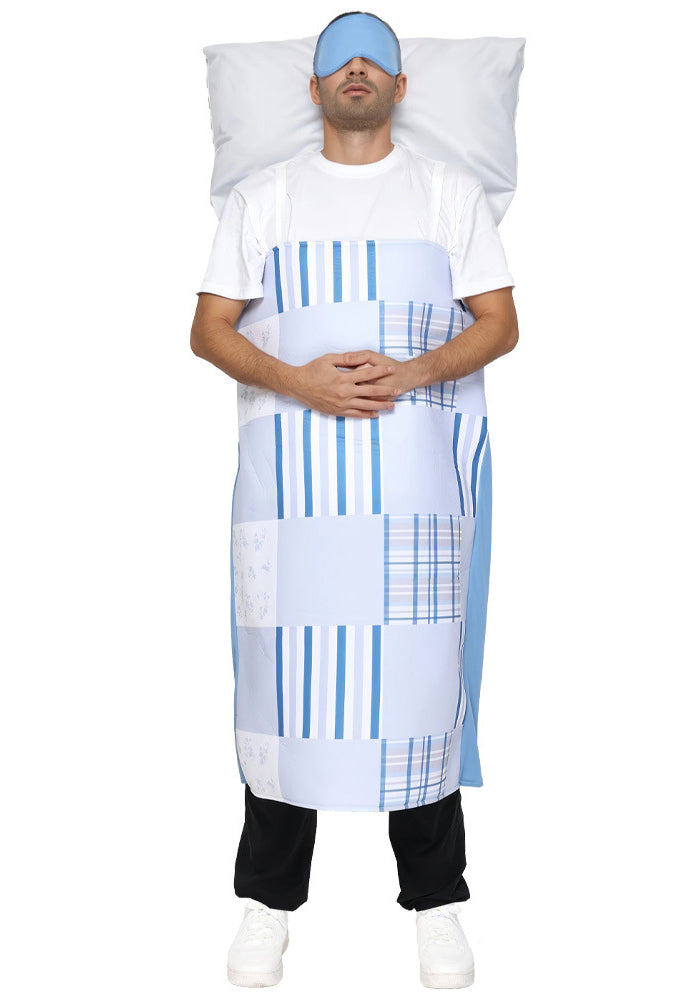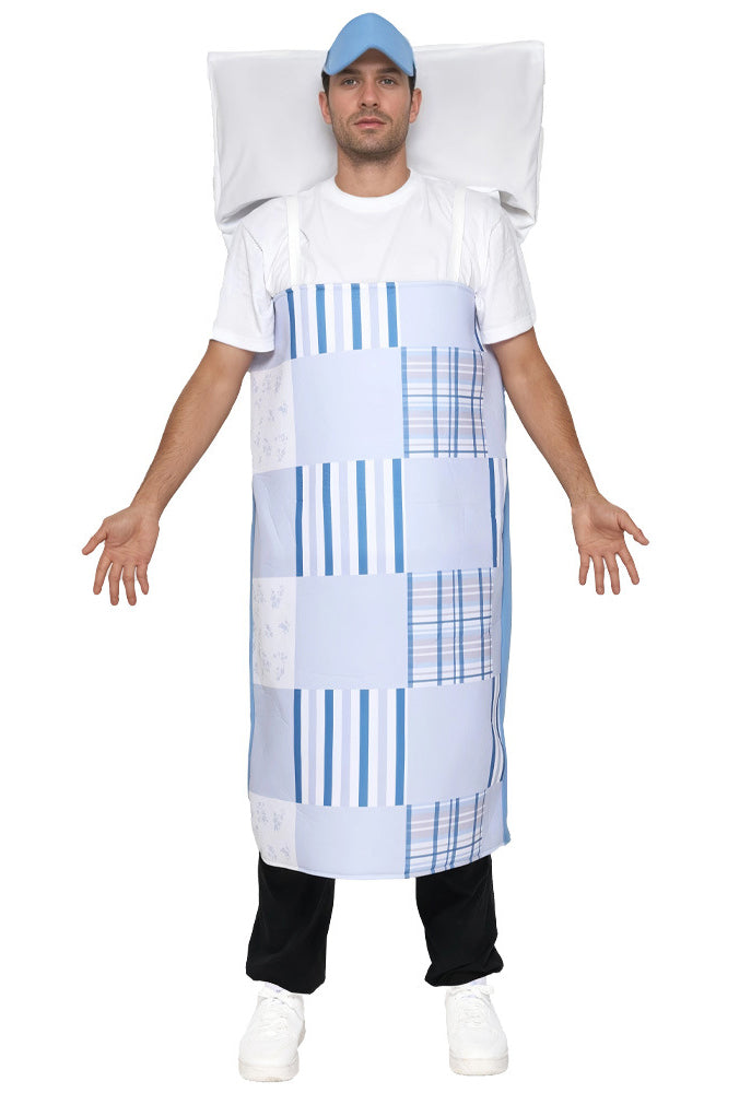 Add humour to any celebration with this Adult Novelty Pillow Bed Costume. The soft tunic design slips on easily and mimics a neatly made bed, complete with a pillow-style headpiece. Its lightweight construction makes it suitable for long events, parties, and festival appearances.