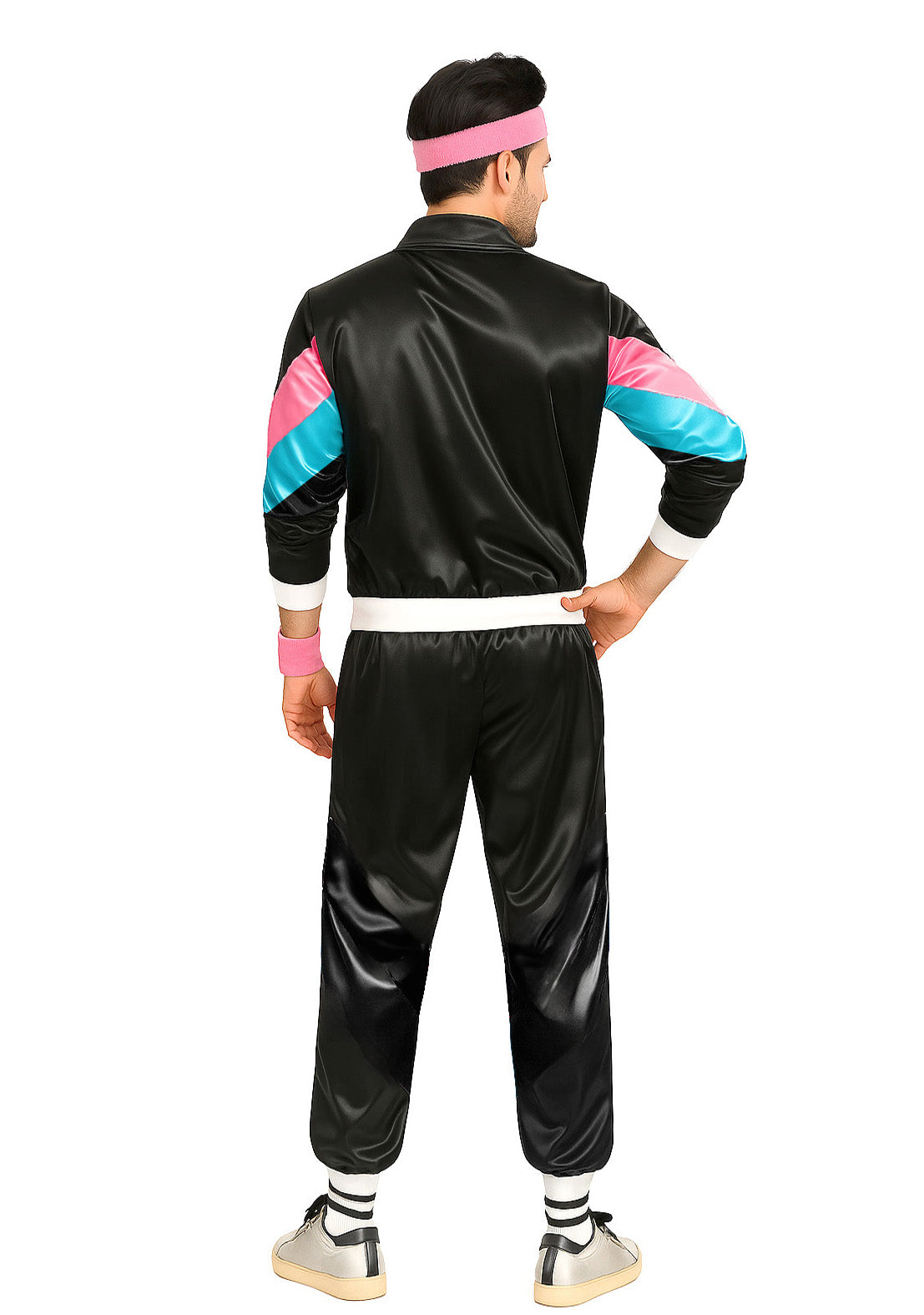 Black Mens 1980s Shell Suit Dress Up tracksuit