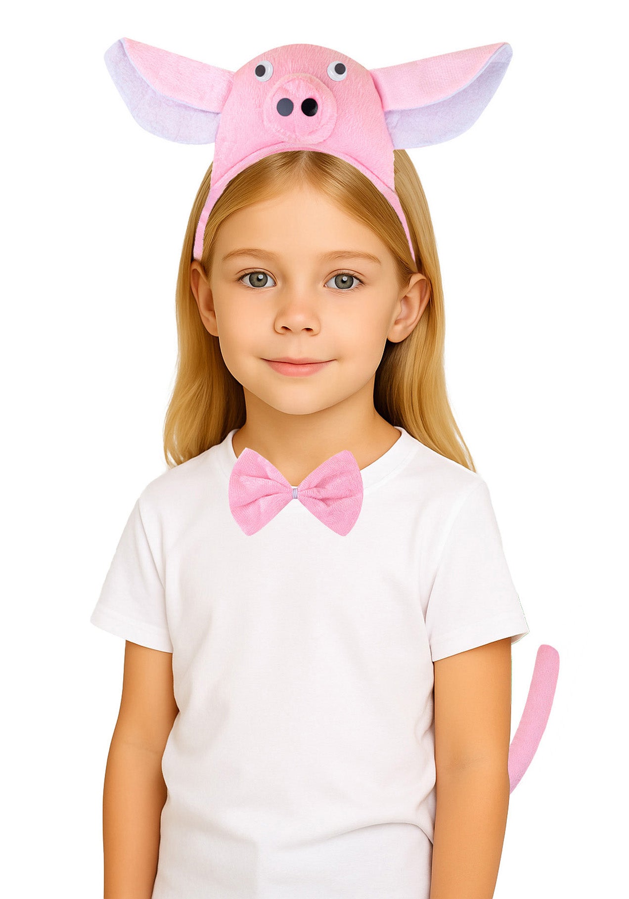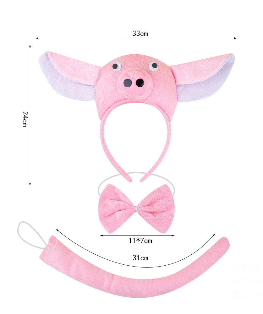 Pig Headband Bow Tail Set Kids Animal Zoo Headpiece