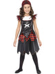 The costume comes with the long sleeve white shirt, a pair of Black and White Striped trousers with an elastic waist, a red headpiece with a skull printed on the front and a red belt