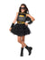 - Dress with digitally printed satin bodice showing bat emblem on chest and belt details at waist, plus ruffle tutu skirt with nylon underlay and three layers of glitter tulle ruffles