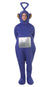 The purple Teletubby outfit for Tinky-Winky has everything you need to be this crazy Teletubby. It is a purple fabric adult onesie in chest size 91-107cm so it should fit most people. It is generous to fit to allow for those who want to stuff their tummy in the included pouch. Although there are mittens at the end of the arms, you can flip these away to use your hands. This Teletubby suit includes a metallic looking TV panel on the tummy, a matching purple hood and a 3D antenna and ears. Foot panels will cover your shoes to give you a totally genuine look.