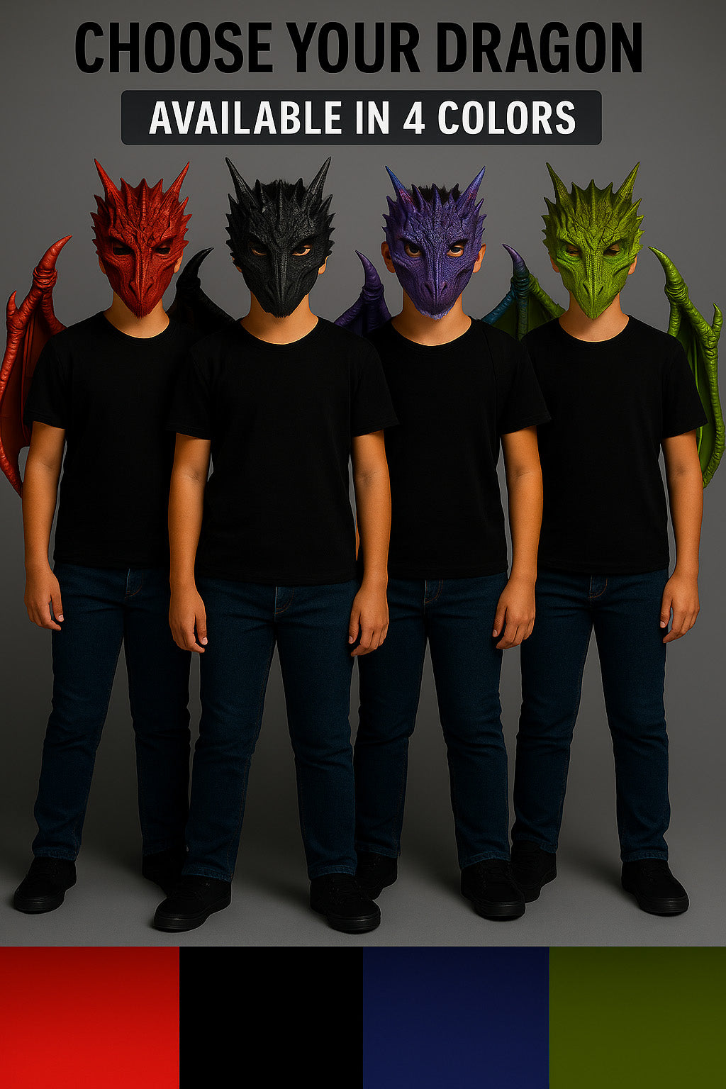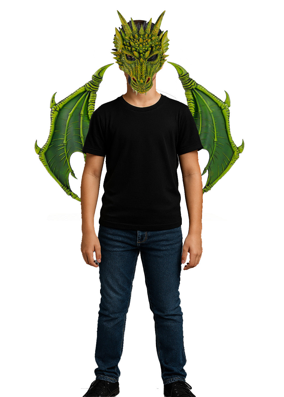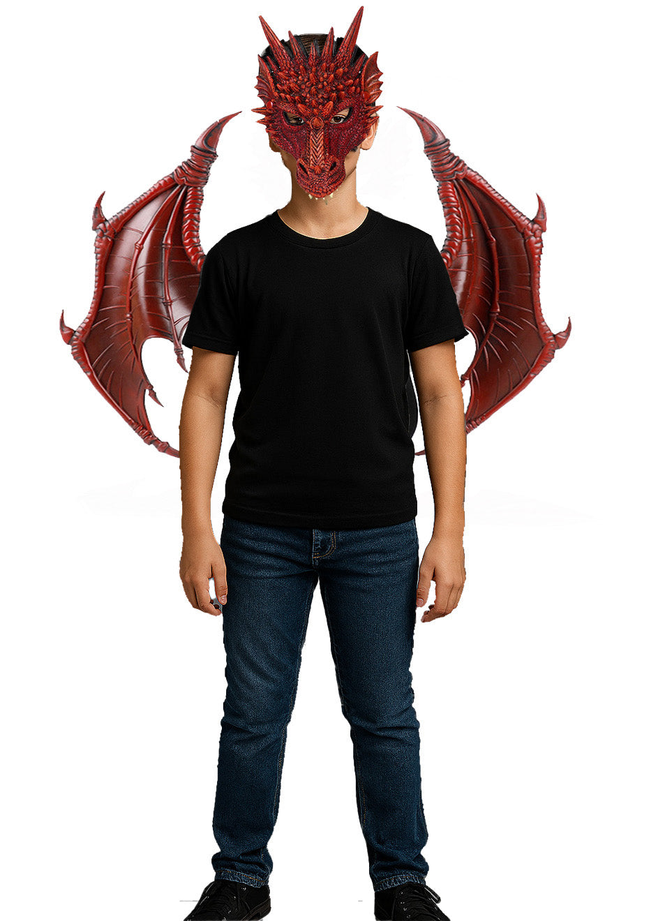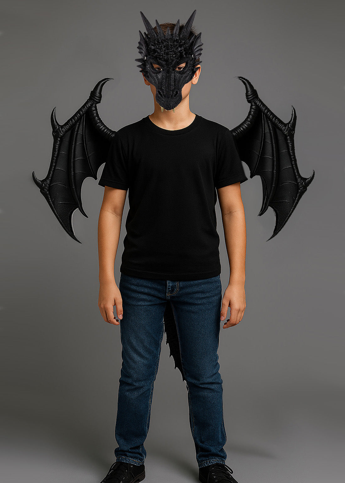 3D Dragon Mask Wing & Tail Set Kids Halloween Mardi Gras Costume Carnival Party Decor Cosplay Halloween Book Week