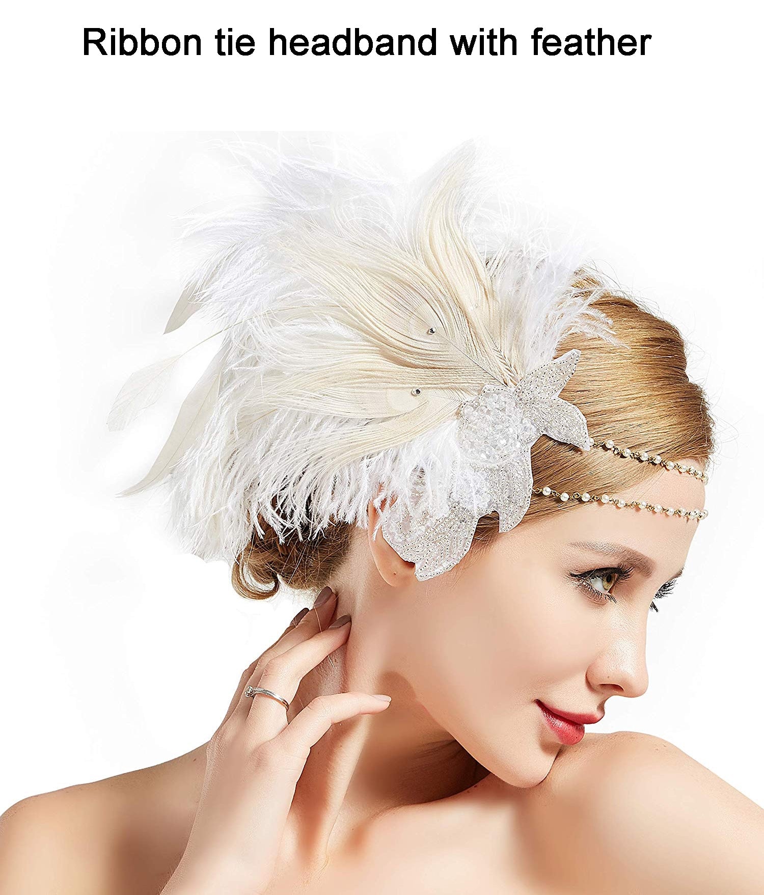 1920s Headband Feather Vintage Bridal Great Gatsby Flapper Headpiece