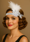 1920s Headband White Feather Vintage Bridal Great Gatsby Flapper Headpiece gangster ladies