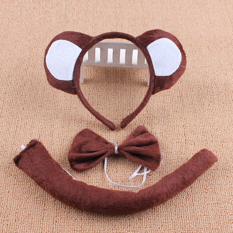 Monkey Animal Costume Headband Bow Tie Tails Set Zoo Party Performance Kids Fancy Dress Accessories