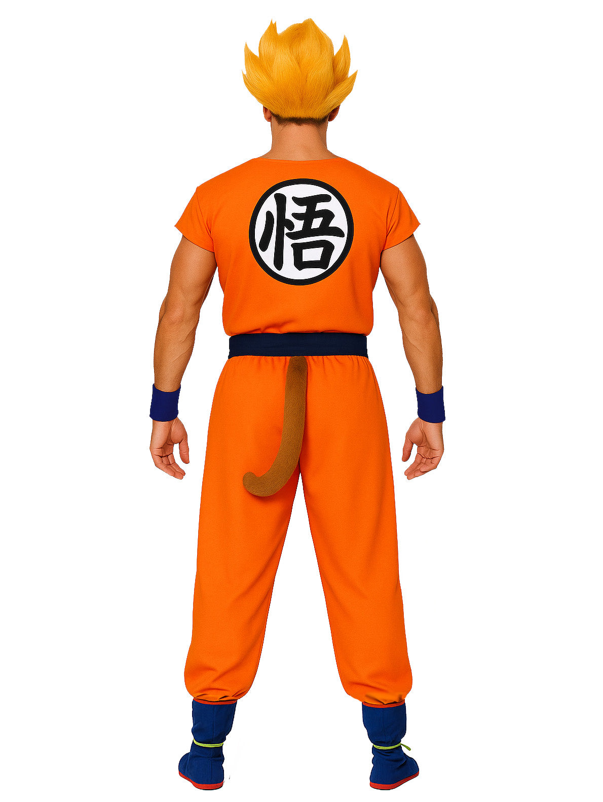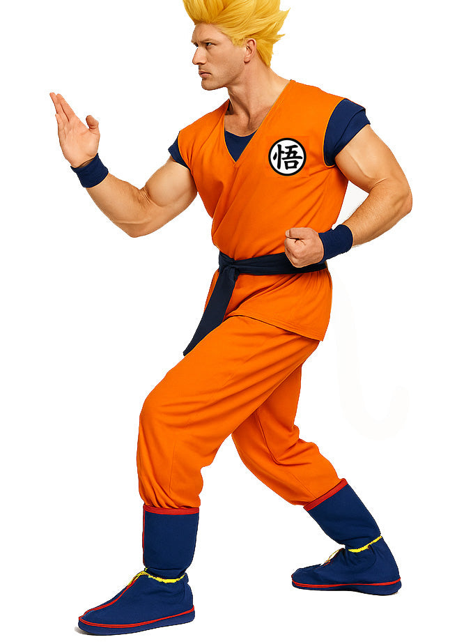 Adult Orange Martial Arts Fighter Costume Set with Spiky Wig
