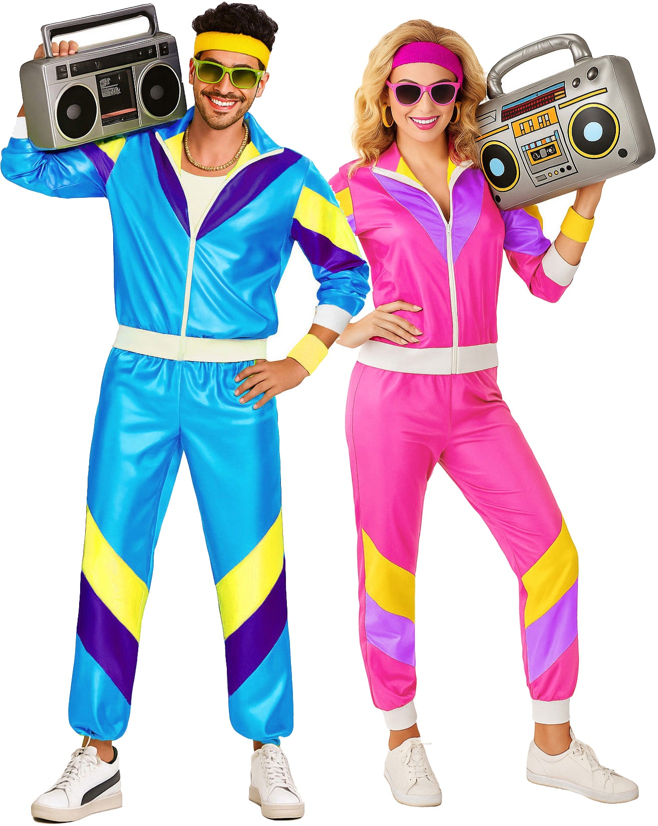 Couple 80s Shell Suit Dress Up Blue Pink Tracksuit