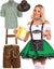 This lovely Oktoberfest costume is available in Australia. It is a bundle for a man and woman couple, in matching green detail. The man's German traditional costume includes a lederhosen in brown, complete with ornate embroidery on the front pocket flap and matching the braces worn across the chest. The braces include sturdy metal fasteners which easily adjust. The man's shirt is in green, matching the lady's green skirt and includes a traditional Bavarian hat. The women's dirndl has a white blouse and lederhosen style braces with a leather-look embroidered outfit. This traditional German pack comes in sizes from small to 3-4XL for men and S- 2XL for the women's outfit.