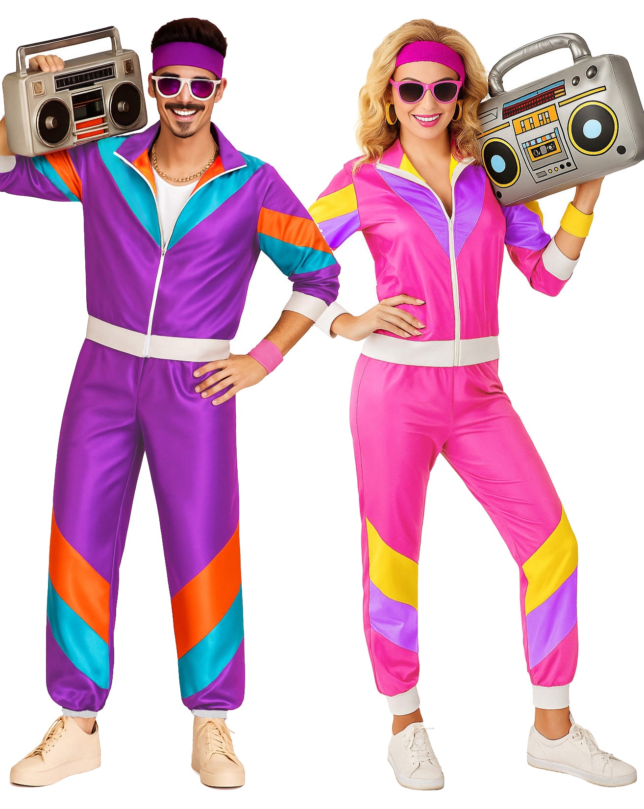 Couples 80s Shell Suit Dress Up Purple Pink Tracksuit