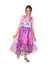 - Dress is in pink and purple colourways and features floral patterns and iconic Barbie ponytail logo throughout the design
