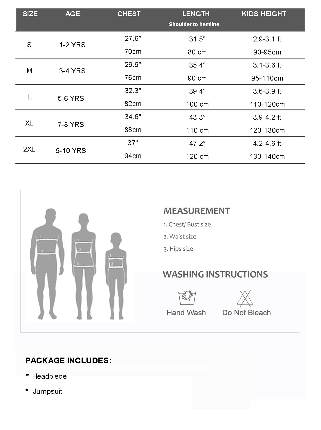 Package includes: