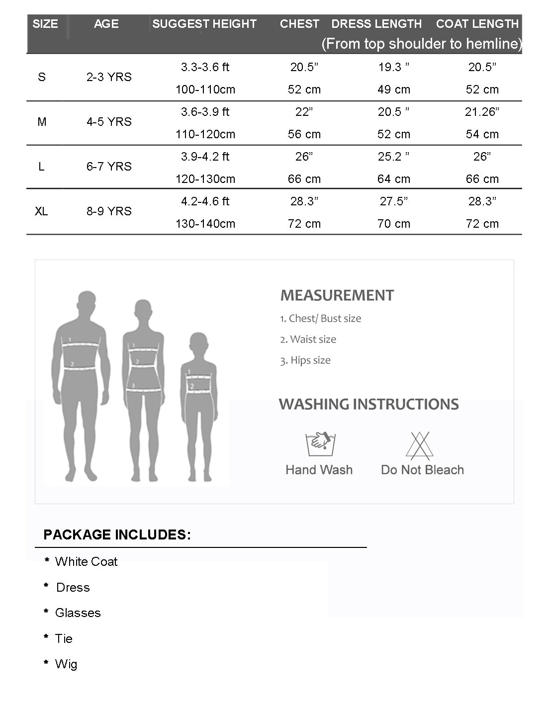 Our mad scientist costume is very popular with nerds and cool kids alike. Great for kids 5 years to teenagers, if they want a female scientist costume to make people pay attention, this is the one. This great selection includes 3 main pieces and two accessories. You will get a distressed lab coat, a two-piece dress, and a crazy scientist blonde wig with blue, green and purple bits through it. We also include a crazy bow tie and reflective colourful safety glasses. The lab coat has an ID panel saying