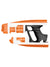 This detailed toy blaster is made from moulded plastic and features orange and black painted panels with a textured grip handle. Designed as a costume prop, it helps complete the iconic Star-Lord look for cosplay and dress-up events.