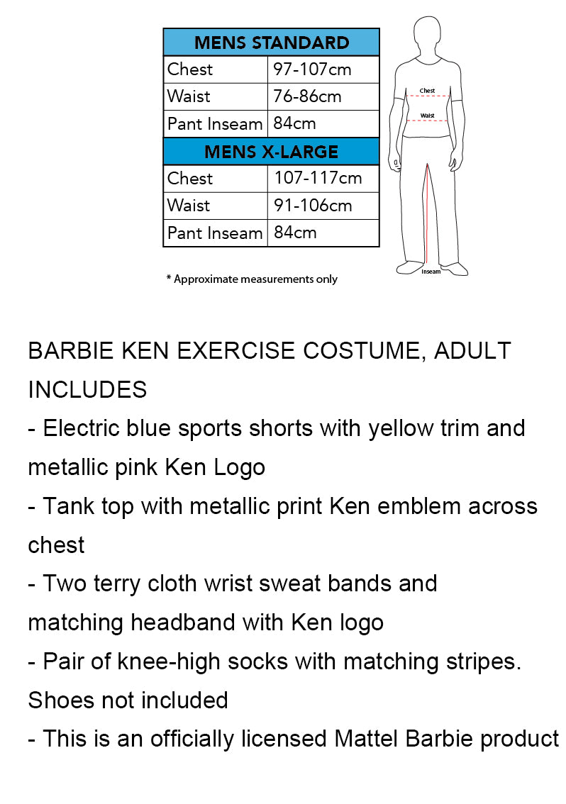 Mens Barbie Ken Exercise Halloween Dress Up Party Costume Adult
