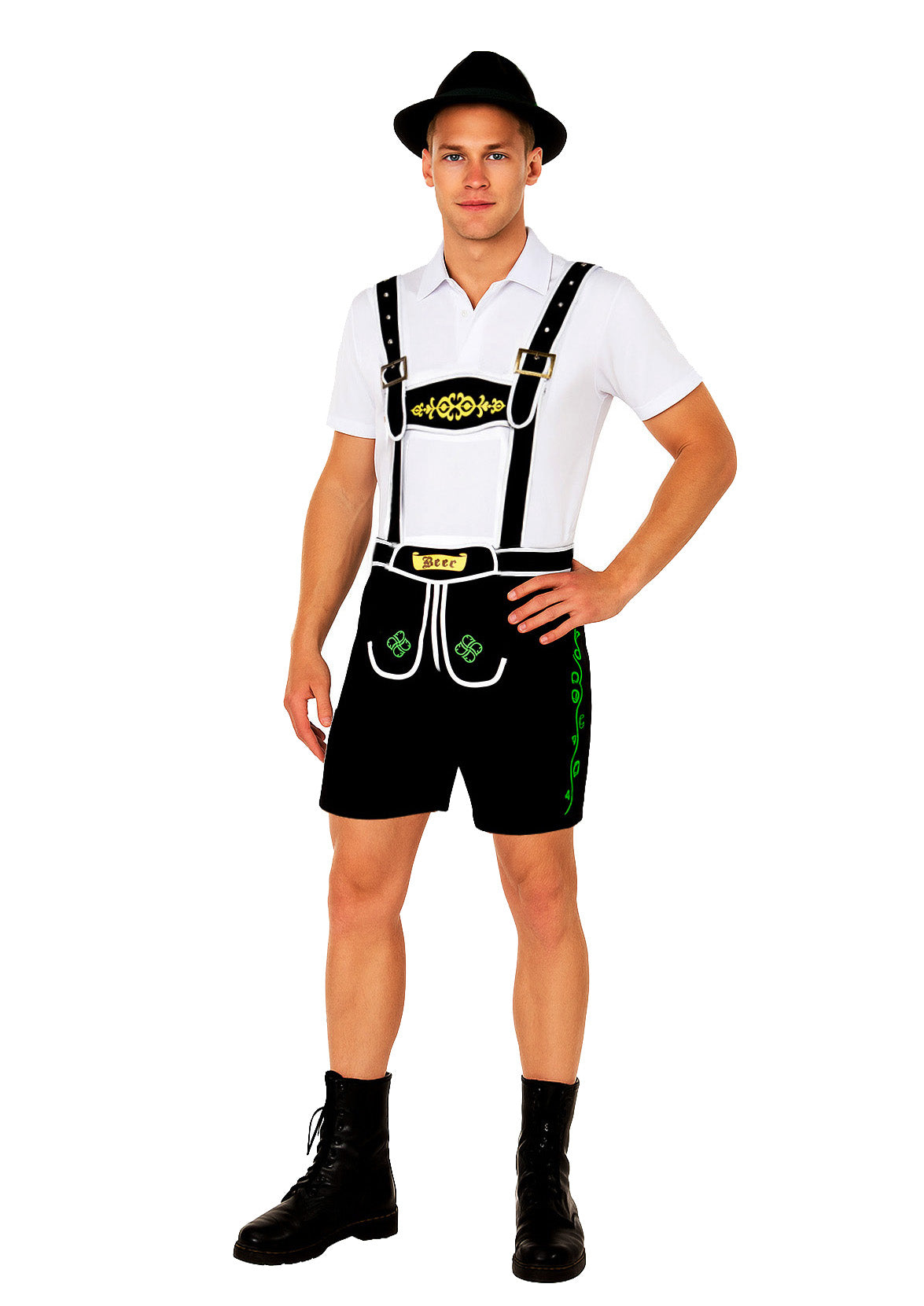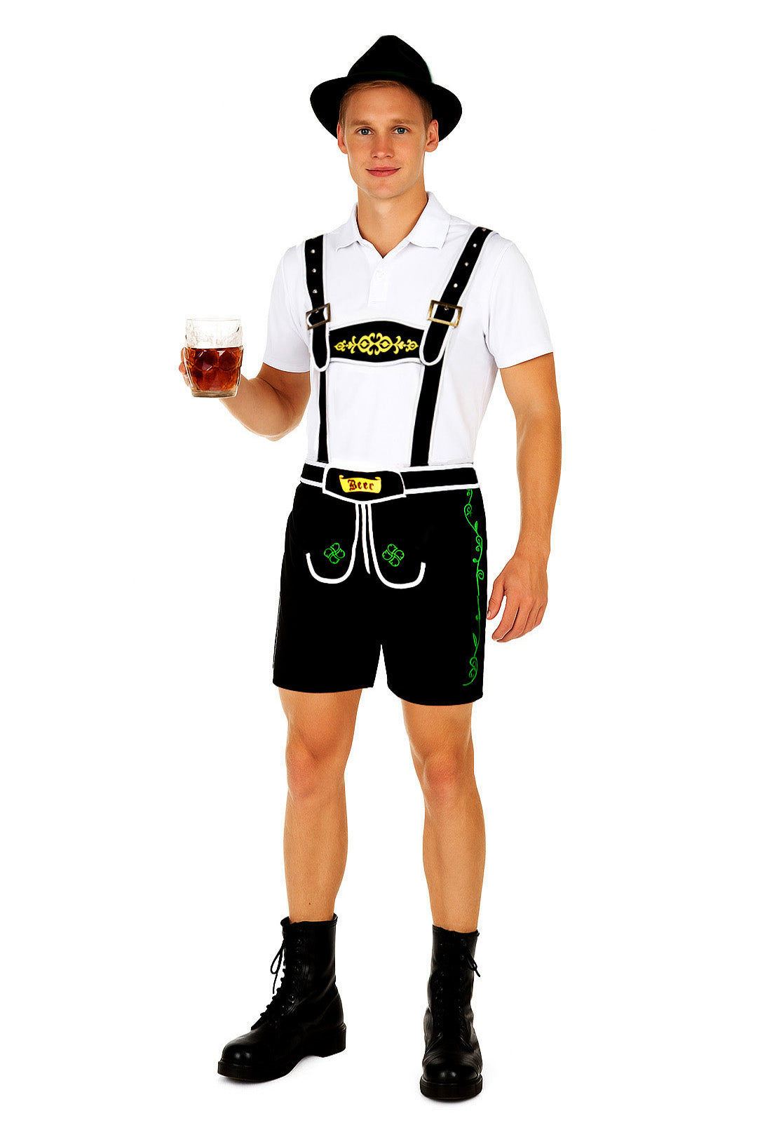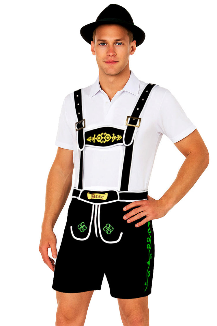 Mens Black Lederhosen Oktoberfest Costume with hat