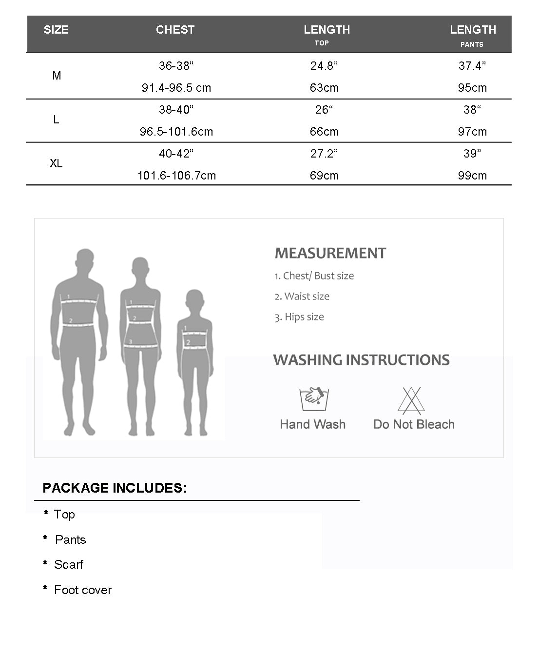 - Head scarf included