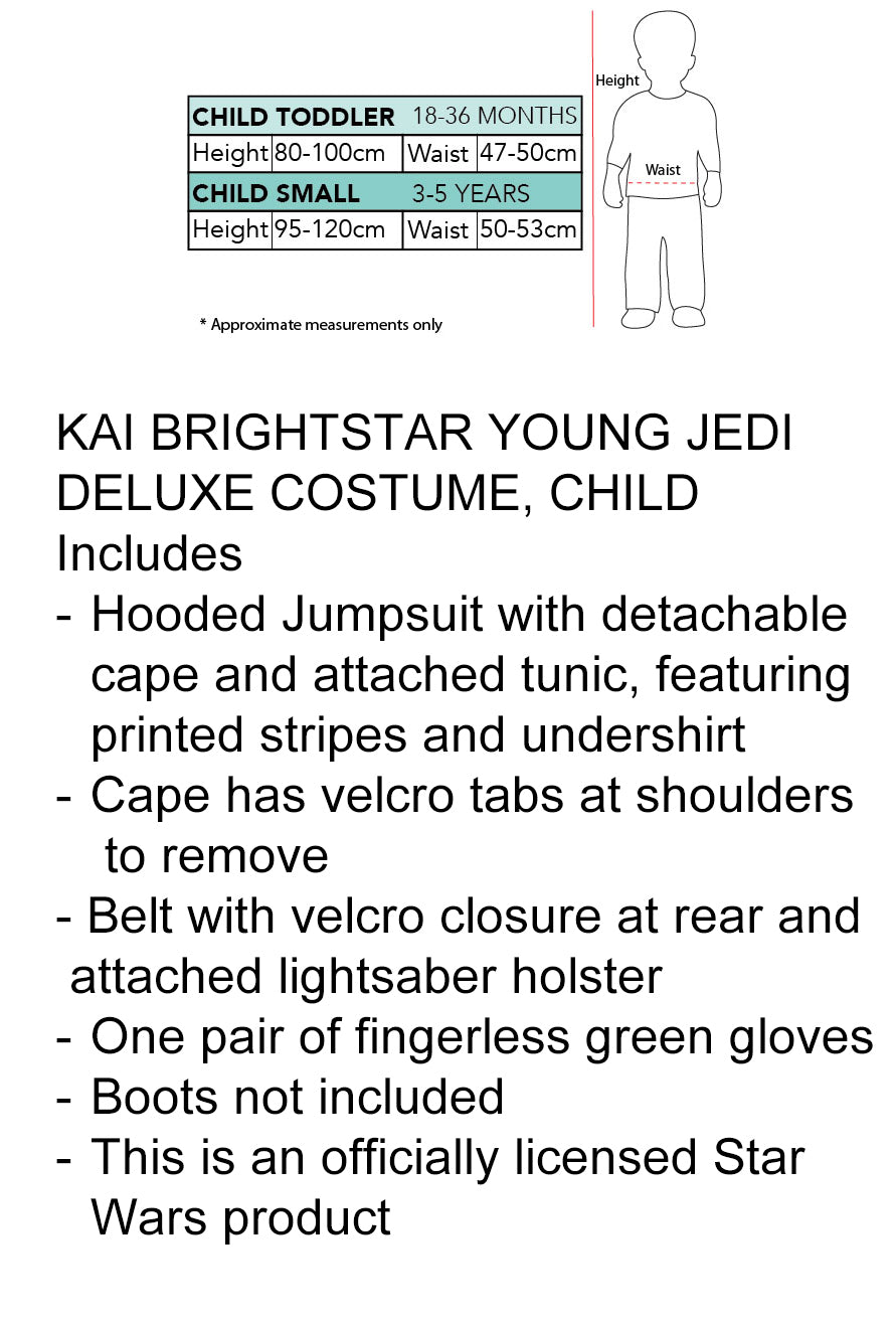 Let your little one experience the Force with this Star Wars Kai Brightstar Young Jedi Deluxe Costume! This officially licensed Star Wars costume features authentic design details that make it ideal for cosplay, Halloween, or Book Week adventures.