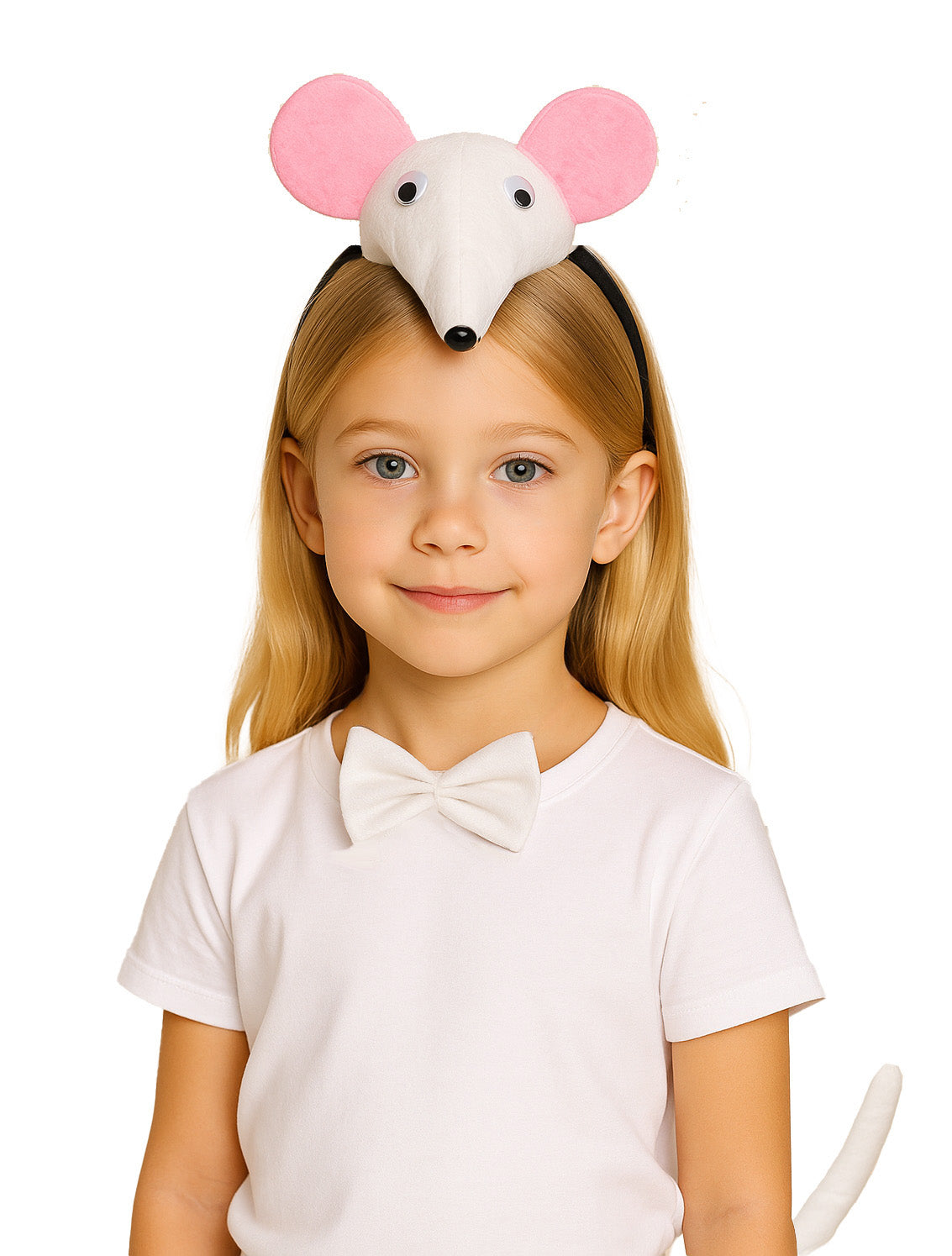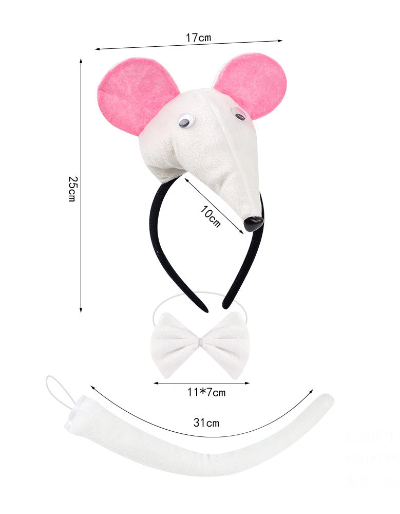 White Rat Headband Bow Tail Set Kids Animal Headpiece