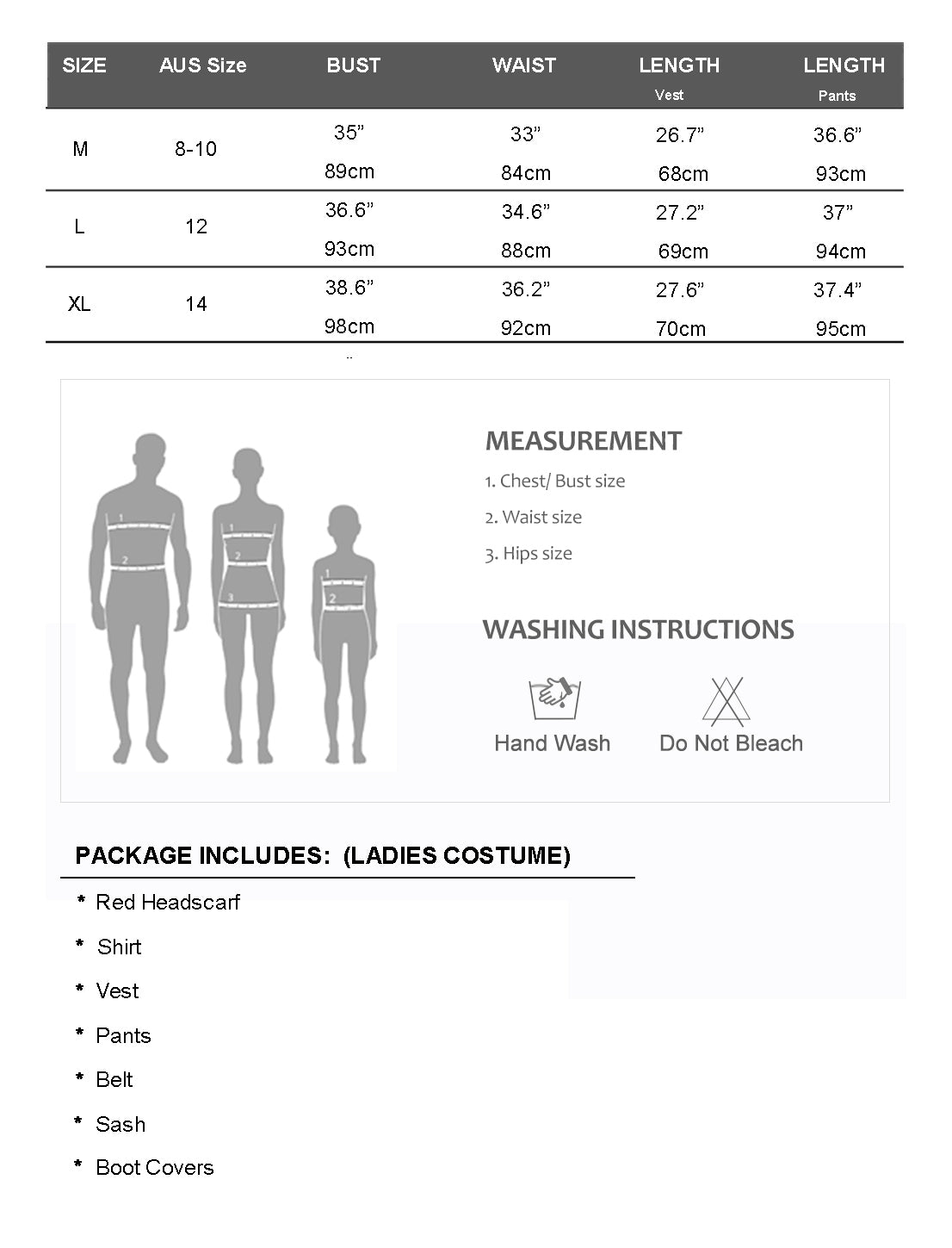 This Women’s Pirate Costume is designed for Halloween parties, Book Week characters and themed events. With detailed accessories and layered fabric styling, it creates a bold and adventurous pirate look suitable for performances and dress-up celebrations.